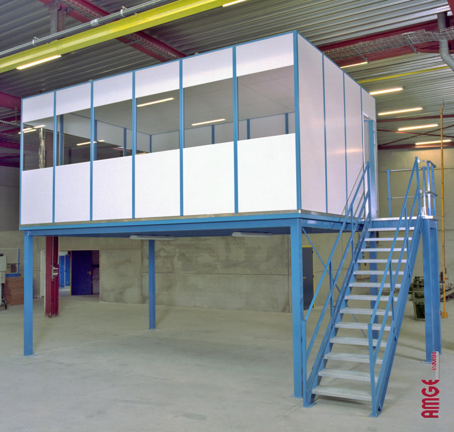 Dans tous les cas, vous rationnaliserez votre espace professionnel, ajouterez des m² exploités et aménagerez à moindre coût en utilisant la solution combinée plateforme et bureau atelier ; avec les avantages de modularité et durabilité des cloisons modulaires AMGE industrie, sans permis de construire, agrandissement ou déménagement.