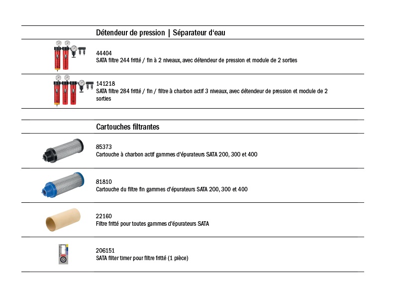 | Désignation | SATA filtre 244 / 284 |