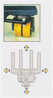 Grâce à son système hydraulique spécifique, l'opérateur peut diriger avec facilité les roues et le gerbeur dans le sens de marche désiré frontal ou latéral.