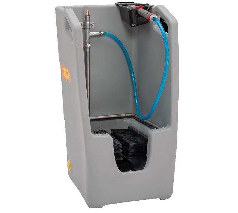 - Équipé de 3 brosses fixes + 1 brosse manuelle avec régulateur de débit verrouillable, raccordée par 1,3 m de flexible