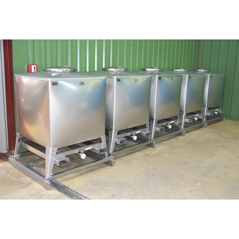 Leur cuve inox est constituée de faces fortement bombées qui confèrent au contenant une rigidité remarquable en assurant son indéformabilité. Capacité standard 1000L.