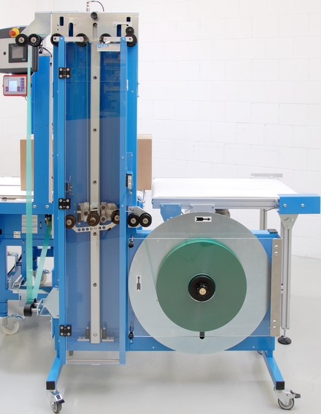 Le système peut traiter des cartons jusqu’à une taille de 1000 x 600 x 600 mm et permet d’utiliser, au choix, des bandes en papier ou en film plastique d’une largeur de 30mm.