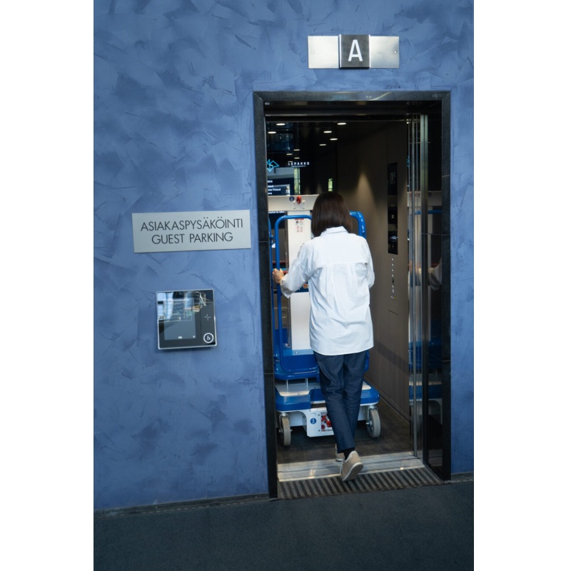 Compacte (0,73 m de large), cette plateforme élévatrice passe aisément dans les portes standards et les ascenseurs.