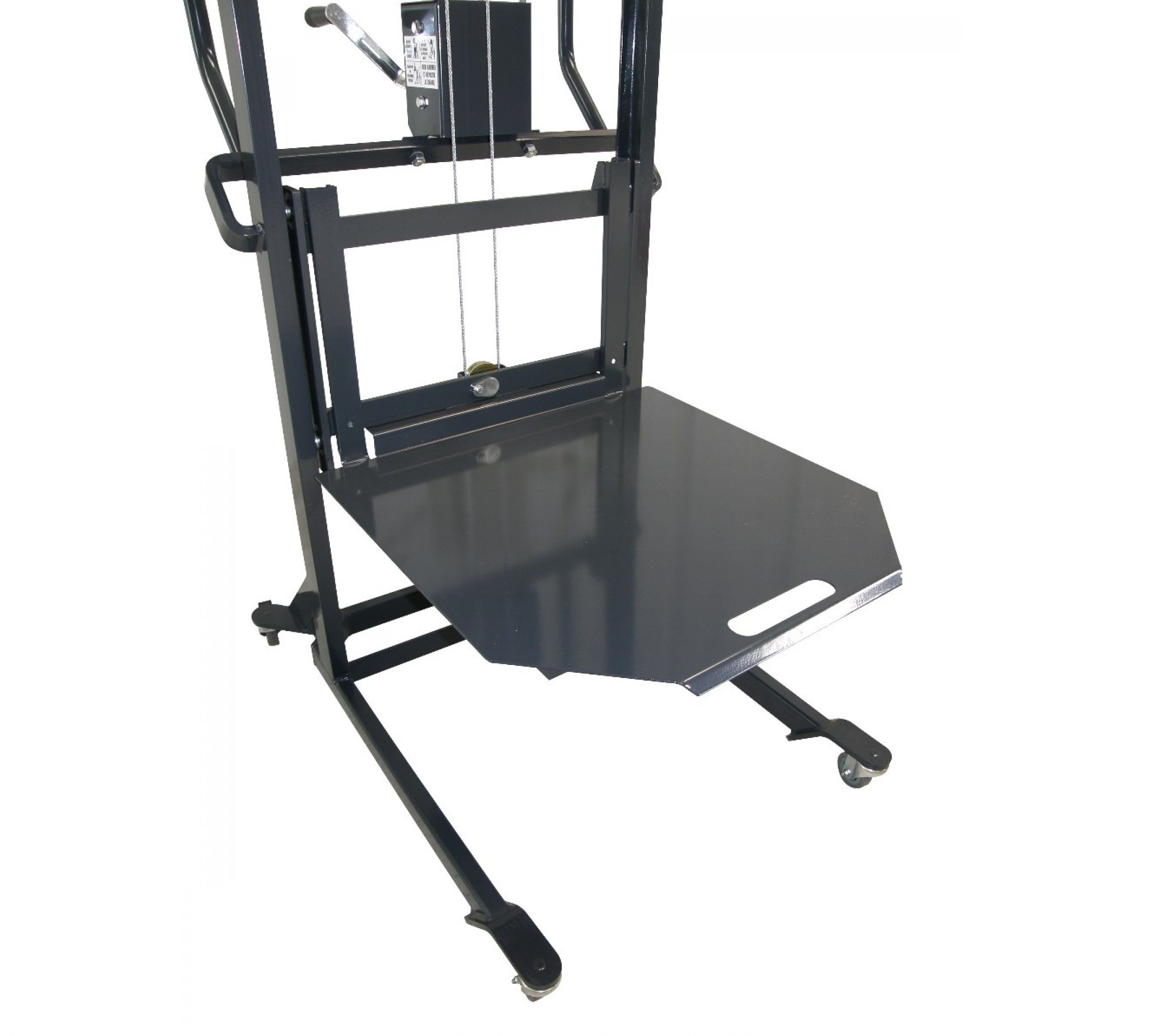 Il porpose un mécanisme de levée sûr et très simple grâce à son treuil manuel auto-freiné. Le mouflage du câble de levage permet à l’opérateur de lever une charge importante avec peu d’effort.
