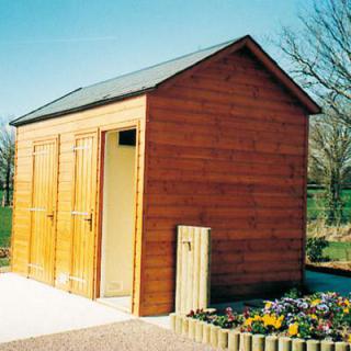 Pour une meilleure intégration environnementale, ces modules sanitaires préfabriqués sont habillables avec un bardage bois.