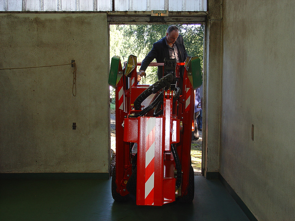 Elle est équipée de 4 roues motrices montées sur pneus gazon (4 moteurs hydrauliques indépendants), ce qui permet de l'utiliser aussi bien en extérieur (sur des sols pentus et accidentés) qu'en intérieur sur sol fragile.