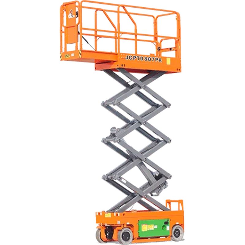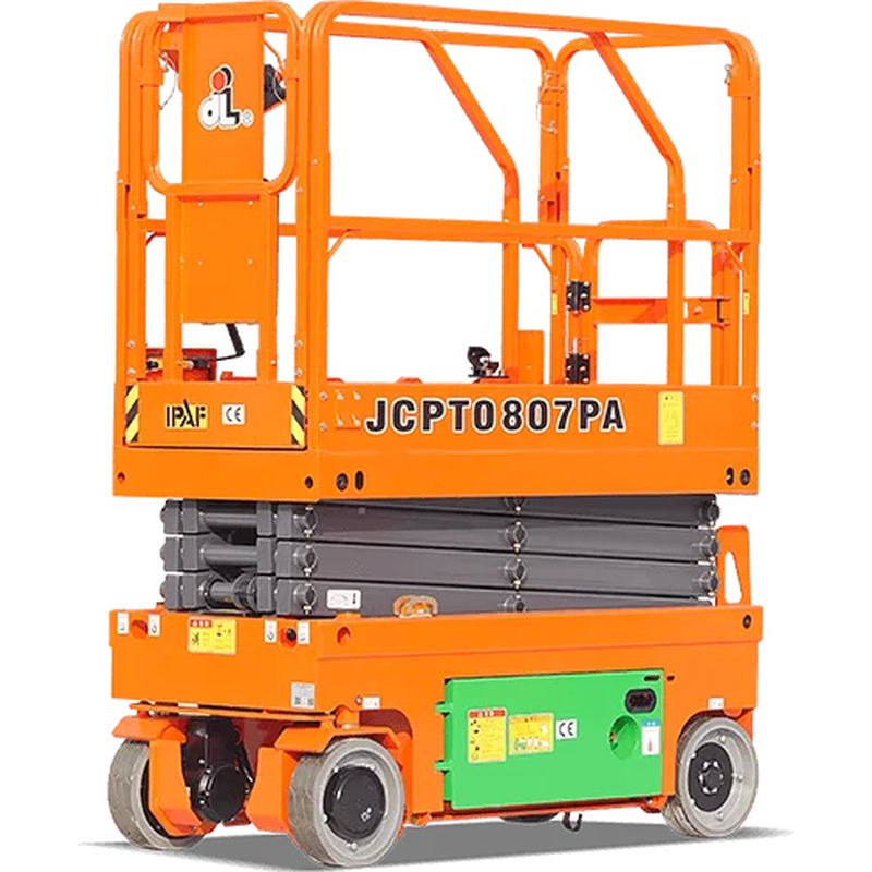 La JCPT0807PA/JCPT1008PA est une nacelle à ciseaux légère, compacte et performante, conçue pour offrir un accès en hauteur dans des environnements restreints.