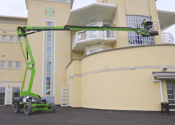 La nacelle élévatrice articulée Nifty HR21 hybride AWD peut également fonctionner uniquement sur batteries. Cette nacelle de 21 mètres est idéale pour travailler dans des lieux exigeant silence et propreté. La génératrice diesel recharge les batteries sans faire appel à une source d’alimentation secteur. Une recharge rapide est obtenue chaque fois que l’engin est au repos avec le moteur au ralenti.