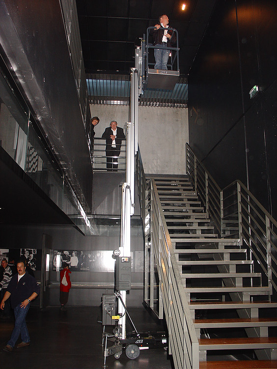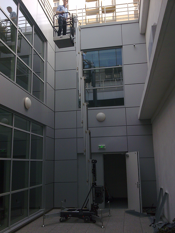 - sa solidité : le mât rigide anodisé de la nacelle accessmaster présente une excellente résistance à la flexion et permet de réduire les vibrations. Il comporte des rails de guidage ne nécessitant aucun graissage.