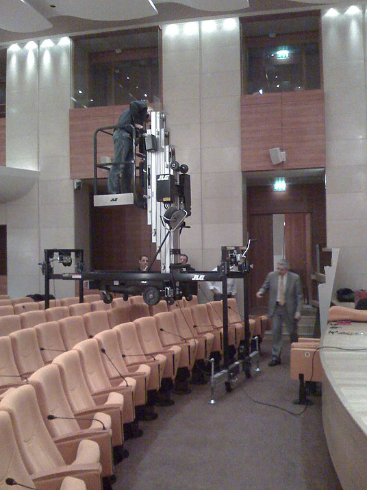 Elle peut également être équipée d'un accessoire "enjambeur" pour passer au dessus d'un obstacle, par exemple des rangées de sièges dans une salle de spectacle.