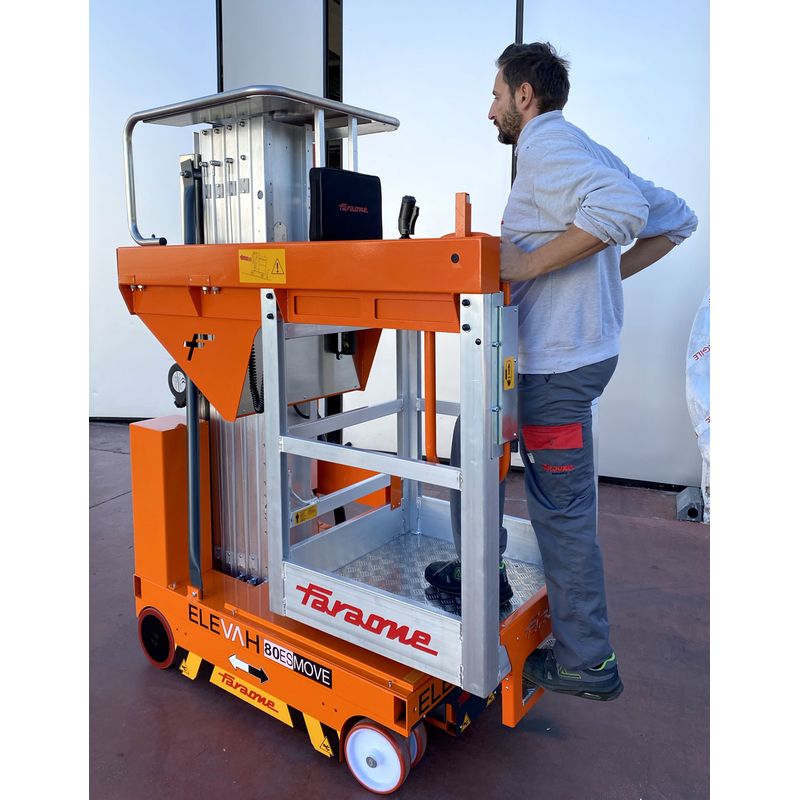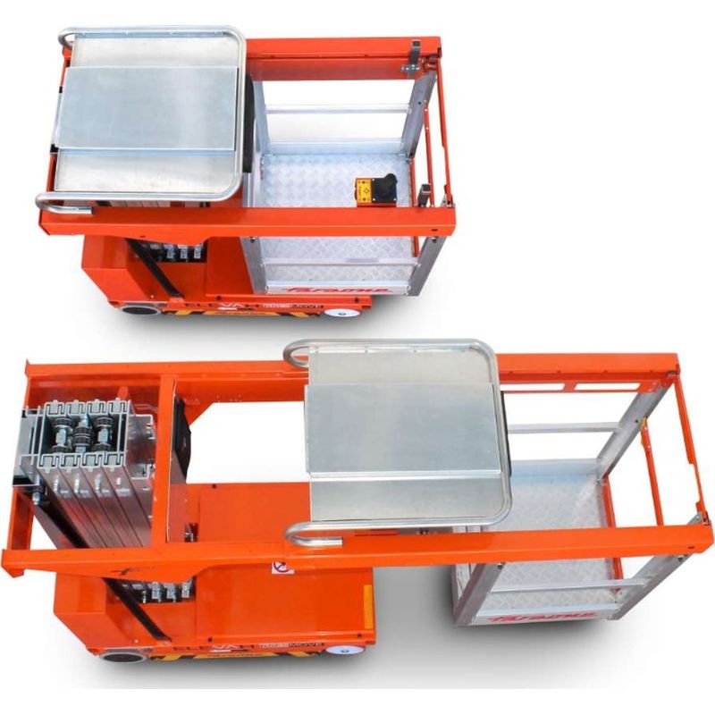 - Sa petite taille (seulement 78 x 153 cm) et ses dimensions minimales permettent à l’opérateur de déplacer la nacelle facilement, même dans les espaces étroits.