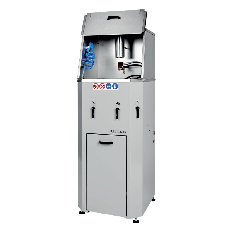 - des bacs de nettoyage pneumatiques sécurisés ATEX permettant un nettoyage rapide au solvant.