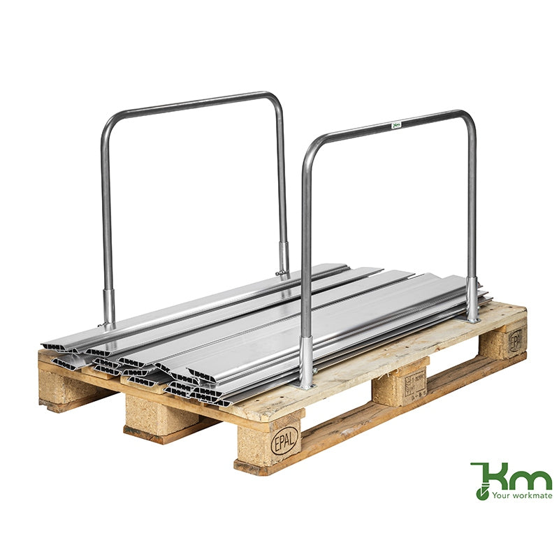 Disponible en 2 hauteurs de 600 et 1000 mm, ces arceaux se montent directement sur le plancher de la palette et la transforment en un support à ridelles amovibles.