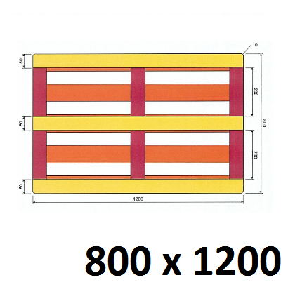 Avec une charge dynamique de 800 kg, cette palette bois 800x1200 mm est demi lourde. Il s'agit d'un produit neuf avec une épaisseur des planches du dessus 18 mm, vendu avec un minimum de commande d'une pile de 20 unités.