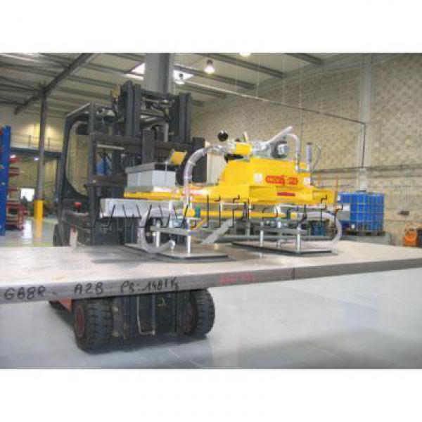 Ce palonnier à ventouse s'adapte directement sur les fourches de votre chariot élévateur. Complètement autonome, il fonctionne sur batterie.