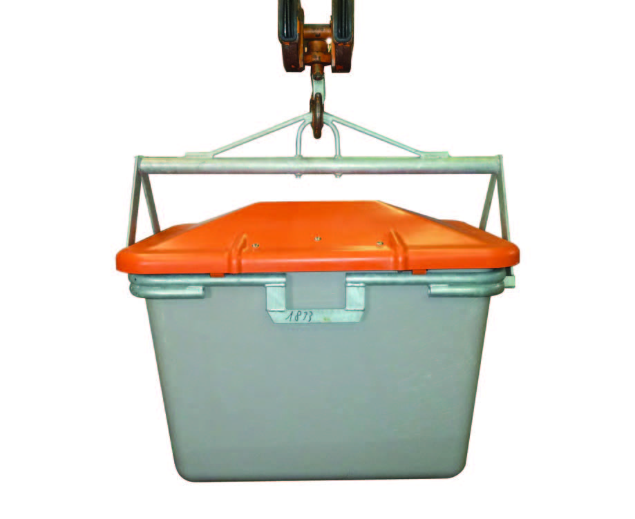 Ce modèle de palonnier spécial bac à sel PFV Cemo permet de soulever et déplacer un bac rempli de produits de déneigement en toute sécurité.