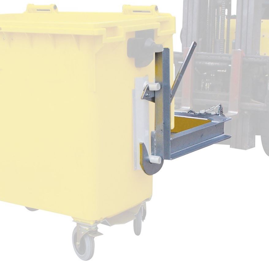 Ce palonnier renverse conteneur roulant est un système de préhension et de basculement en acier galvanisé peint. Il convient pour le vidage de conteneurs 4 roues de contenance 660 L, 770 L et 1000 L.