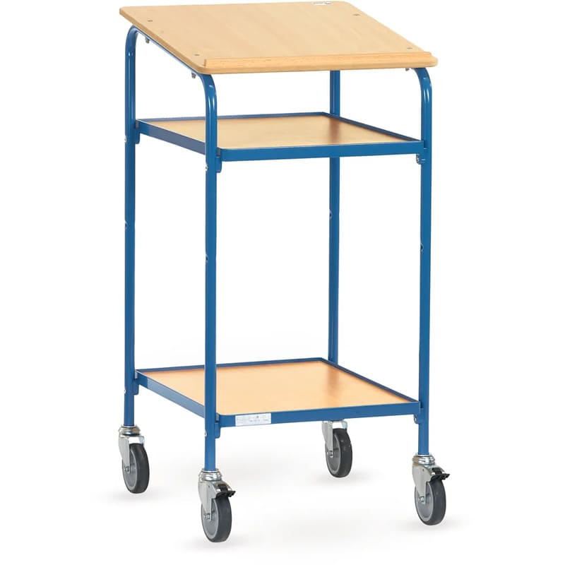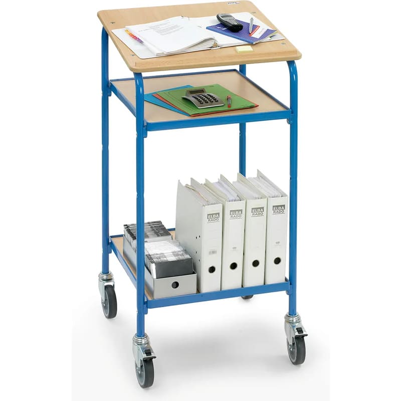 Ce pupitre d'atelier roulant est le poste de bureau d'appoint par excellence pour toutes les zones d'entrepôts, de réception ou livraison, ainsi que les magasins de pièces et de fournitures. Admettant une charge 100 kg, dimensions utiles 500 x 600 mm, avec écritoire et 2 plateaux, il vous permet d'écrire et de signer les bordereaux en toute circonstance.