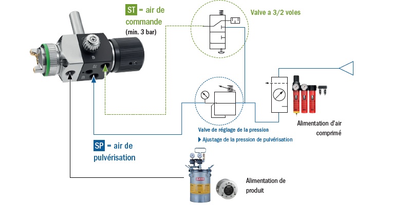 Pistolet automatique à commande de réglage interne SATAJET 1000 A RP
