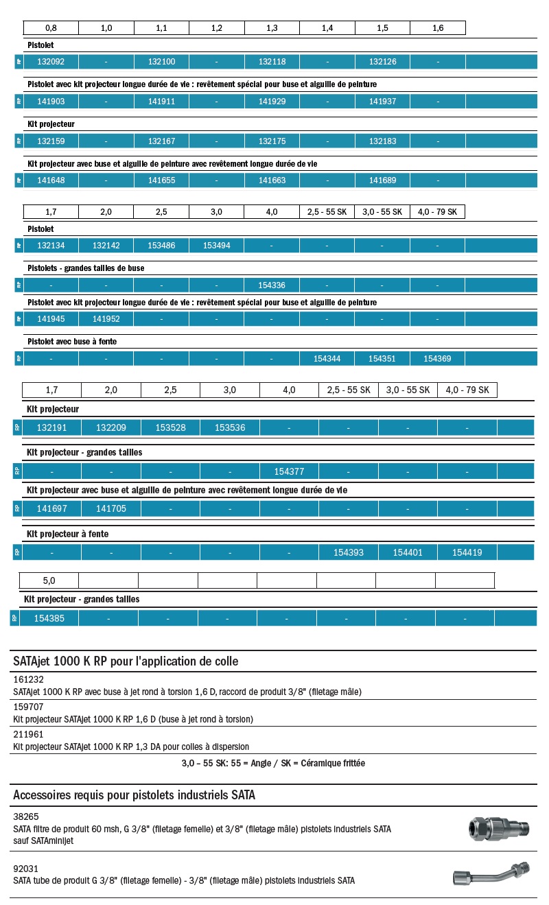 | Désignation | Pistolet à peinture SATAJET 1000 K RP |