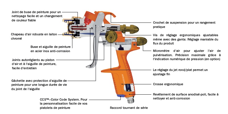 - CCS™–Color Code System. Pour la personnalisation facile de vos pistolets de peinture