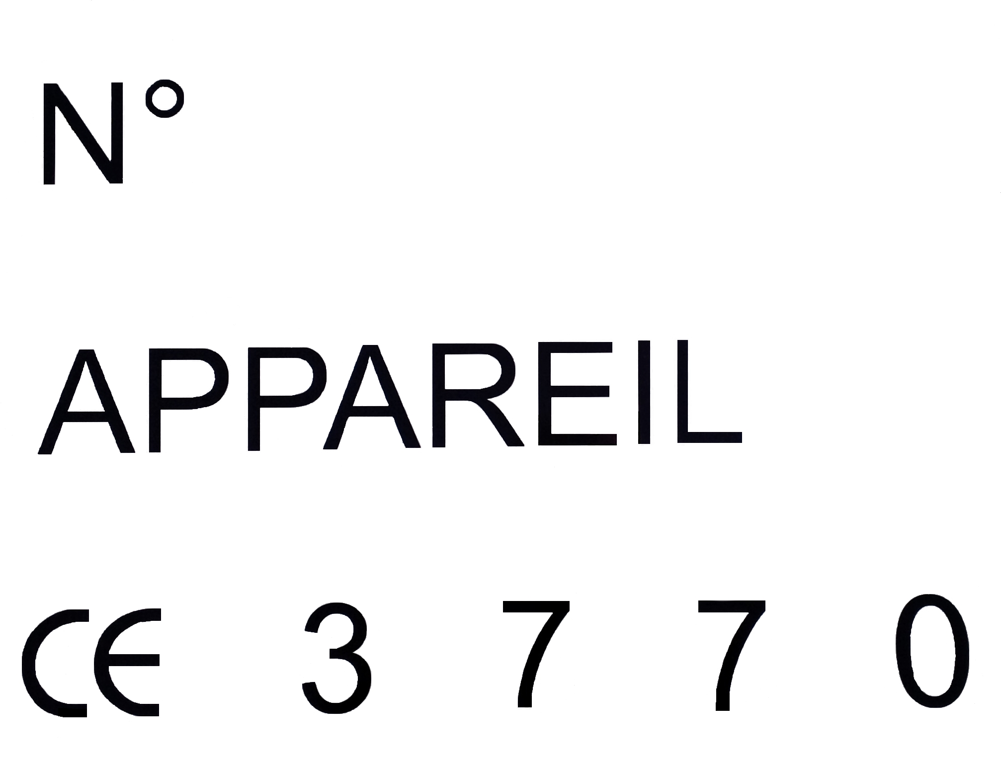 Le marquage se compose de 2 plaques de base autocollantes en vinyle blanc, proposant pour l’une d’un marquage APPAREIL et pour l’autre du marquage N° (numéro).