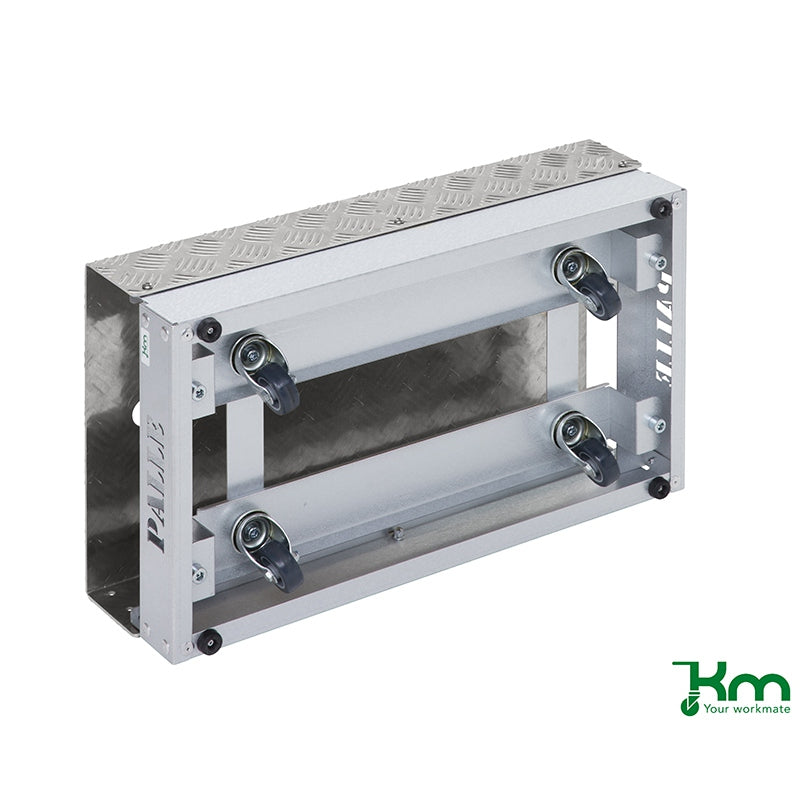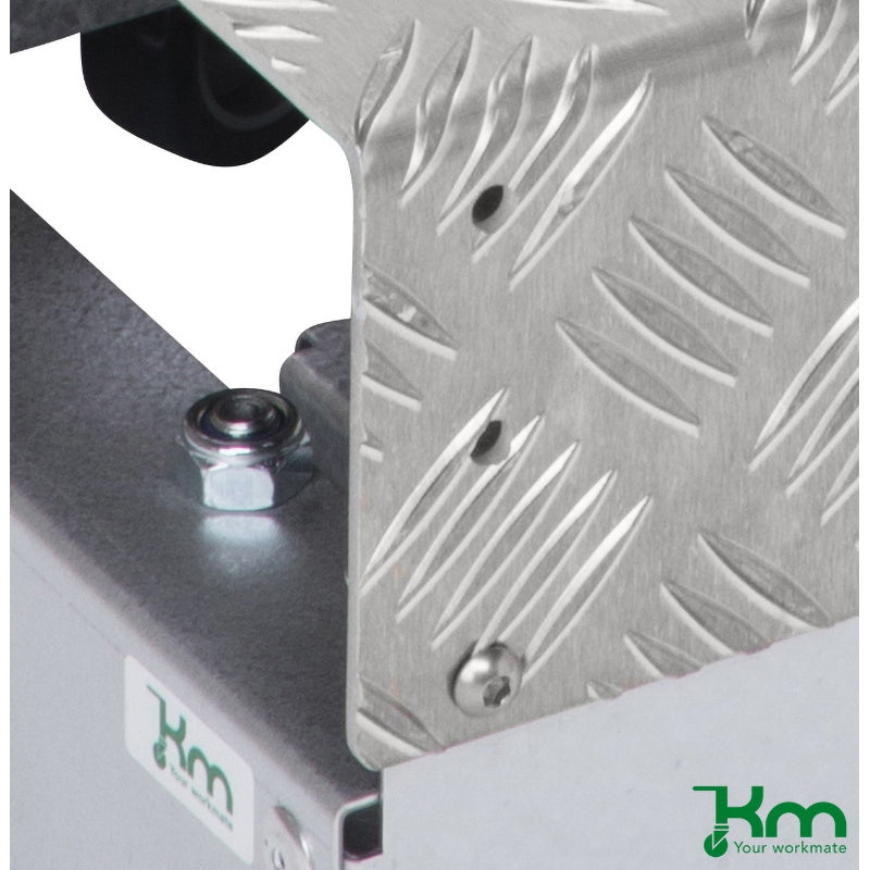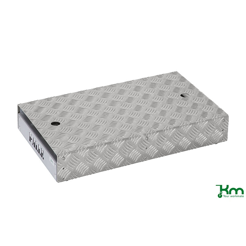 La plateforme aluminium mobile KM1688-E est un petit marchepied compact, équivalent à 1 marche, pour poste de travail, réglable sur 3 hauteurs.