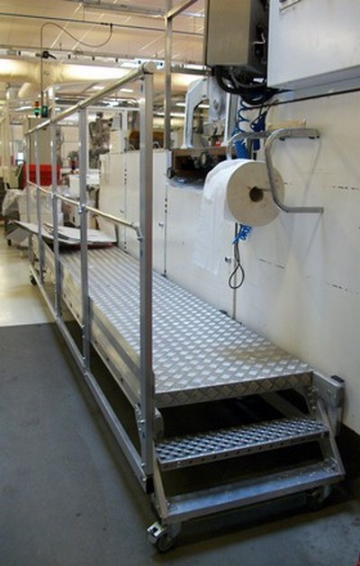 Cette plateforme de travail mobile, est une réalisation de longueur spéciale extrapolée de nos fabrication LONGDOCK. Sur la base d'une structure en alliage d'aluminium, la plate-forme est en caillebotis composite antidérapante.