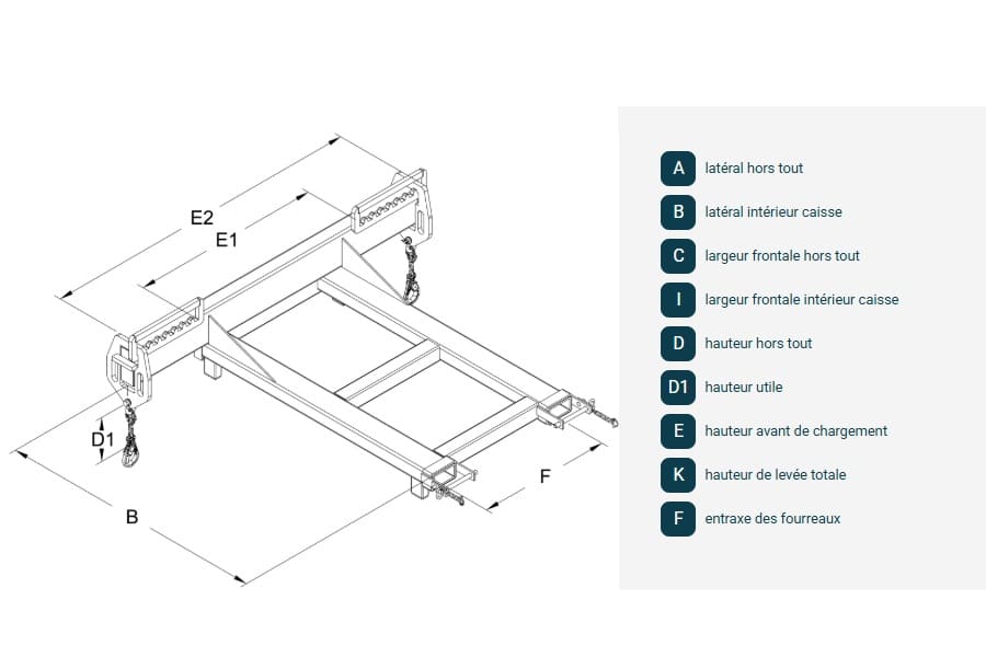 La potence de levage réglable pour charges longues CC est une poutre équipée de fourreaux pour la préhension par élévateur.