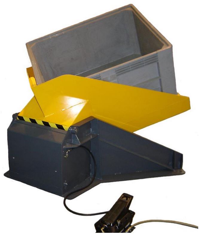 Le présentoir inclineur India Pik permet d'incliner les caisses et conteneurs jusqu'à 30° avec un force / pression de 4/6 bars. Le chargement de la caisse s'opère par transpalette.