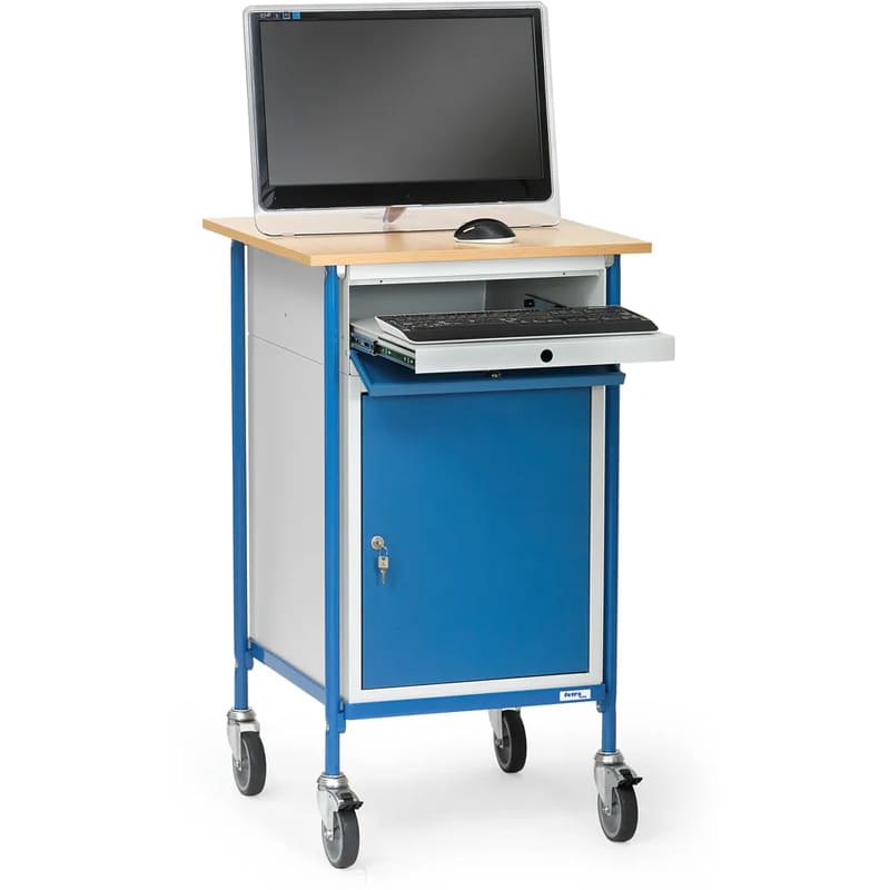 Charge 150 kg, dimensions utiles 650 x 650 mm avec placard et tiroir porte clavier et tapis de souris.