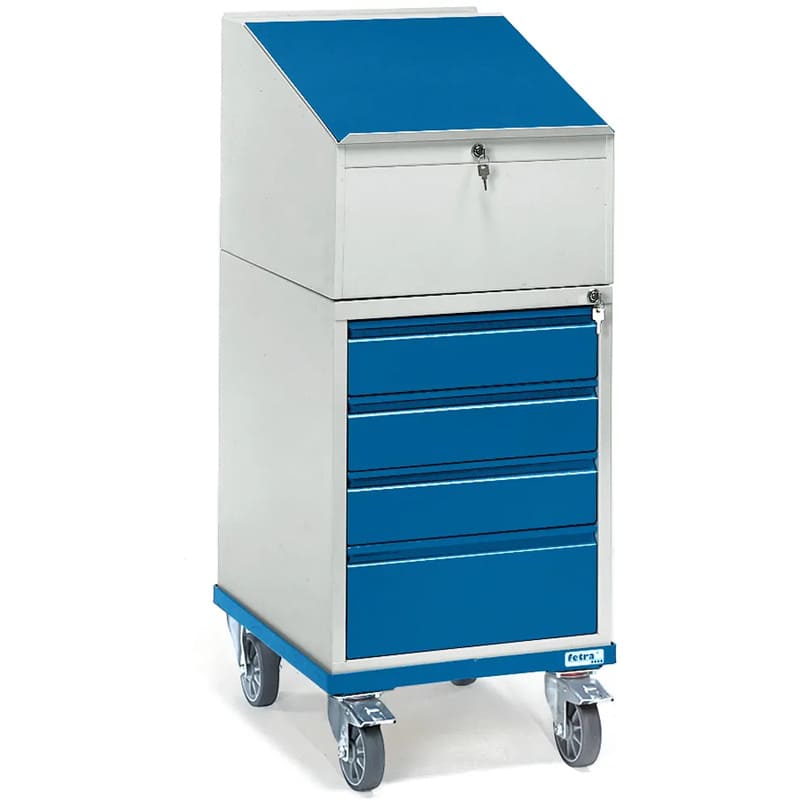 - Placard roulant à tiroirs verrouillable, avec écritoire en tôle d'acier