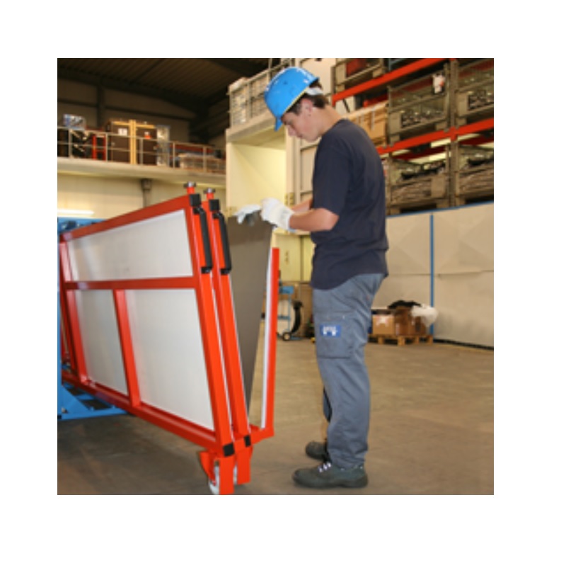 Il est particulièrement adapté au stockage de tôles verticales mais il peut se décliner à d'autres produits plats et lourds.