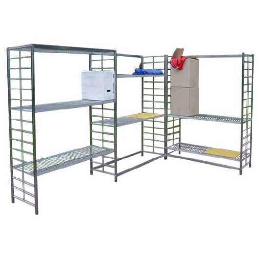 Rayonnage modulaire avec étagère en fil Inox, pour les environnements où les contraintes d'hygiène sont importantes.