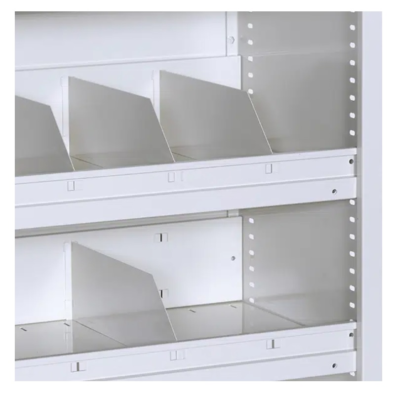 Fabriqués d’une seule pièce et en acier, les panneaux latéraux sont particulièrement rigides et apportent une grande stabilité à l’ensemble. Ils ferment latéralement chaque niveau assurant ainsi une séparation parfaite entre des tablettes adjacentes.