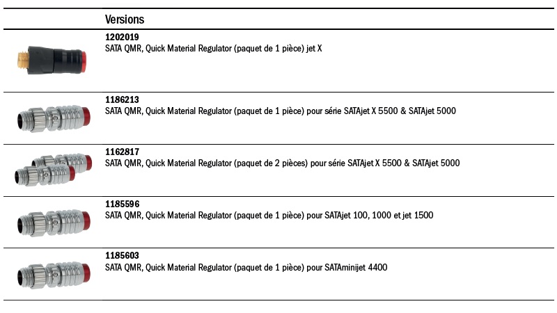 Le régulateur de flux produit SATA QMR ne requiert pas d'entretien, est facile à utiliser et peut se brancher sur les pistolets de peinture suivants :