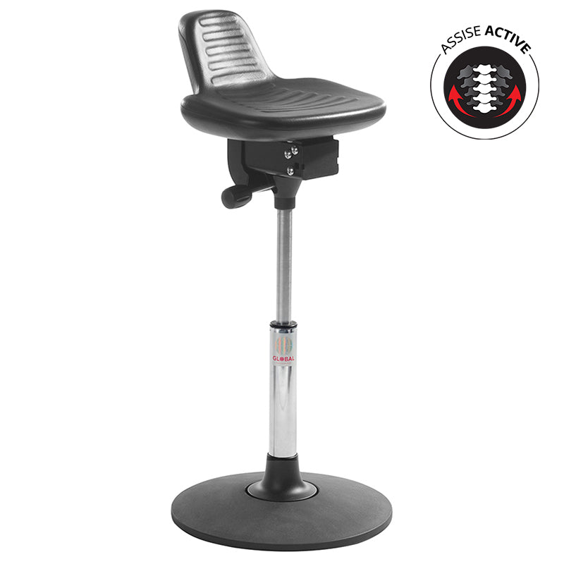 Stable avec sa base flexible, le siège assis-debout Alfa Sway permet de changer facilement de position de travail durant la journée.
