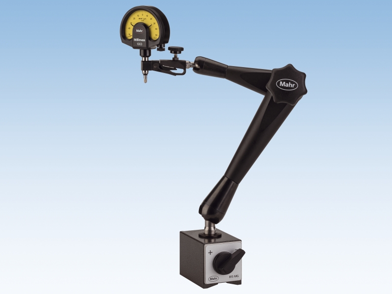 Particulièrement adapté aux appareils de mesure à résolution au µm, ce statif de mesure de précision être orienté dans toutes les positions de son rayon d'action. Afin de délivrer une mesure précise, toutes les articulations du staif de mesure 3D MARSTAND 815MG peutsont fixées solidement avec une poignée.