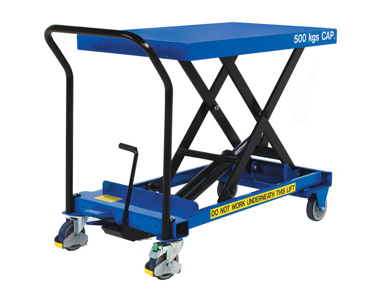 Cette table élévatrice manuelle est une plateforme roulante de standard industriel.