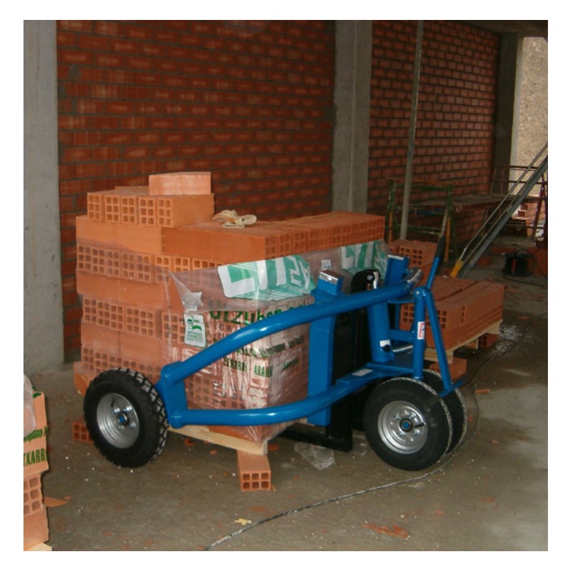 Ses fourches se déplacent sur des rouleaux à bagues autolubrifiées, ce qui rend plus facile le déplacement et le levage. Elles sont réglables en écartement, permettant ainsi de s'adapter à plusieurs modèles de palettes jusqu'à 1 400 x 1 200 mm.
