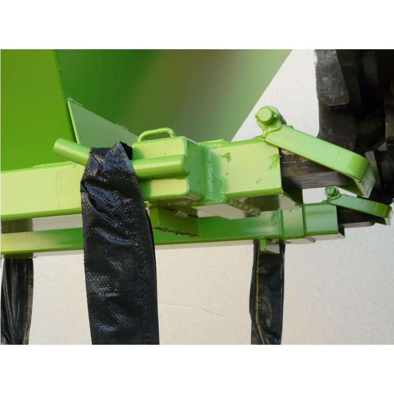 Le verrouillage de la trémie se fait automatiquement par étriers lors de la levée.