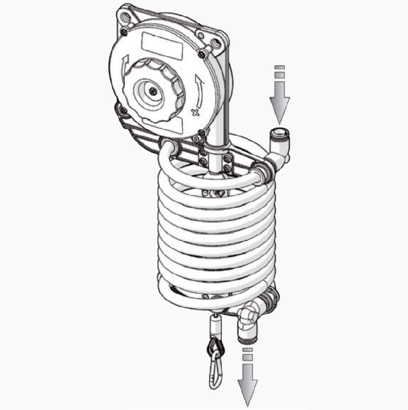 Ce tuyau spiralé à air comprimé est un flexible d'alimentation adapté à notre équilibreur de charge EQ2.