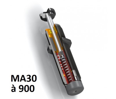 Par la longue course (MA900 avec 40 mm), on obtient des forces de freinage et de réaction très faibles.