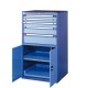 Cette armoire d'atelier à portes battantes est équipée de 4 tiroirs et de deux portes battantes. L'armoire d'atelier à portes battantes est faite pour le rangement et le classement de tous types d'équipements d'atelier. Dessus caoutchouc rainuré 4 rebords, 1 tablette et 1 rayon extensible. Armoire avec un bâti en tôle d'acier ép. 10/10e. Mobilier d'atelier muni de tiroirs simple extension (100 kg par tiroir, ouverture à 87 %). Glissière sur roulement à billes. 16 coloris d'armoires standard (poudre époxy).
