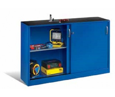 L'armoire de comptoir à portes coulissantes vous fait gagner la plage de pivotement des portes battantes. Avec les armoires à portes coulissantes vous gagnez de la place et augmentez la sécurité.
