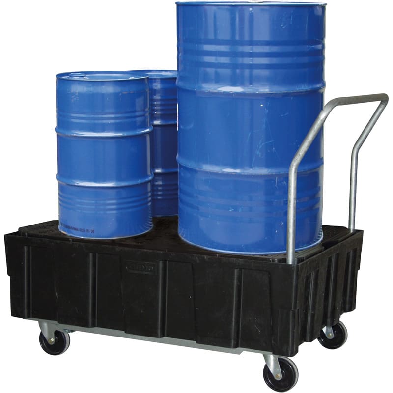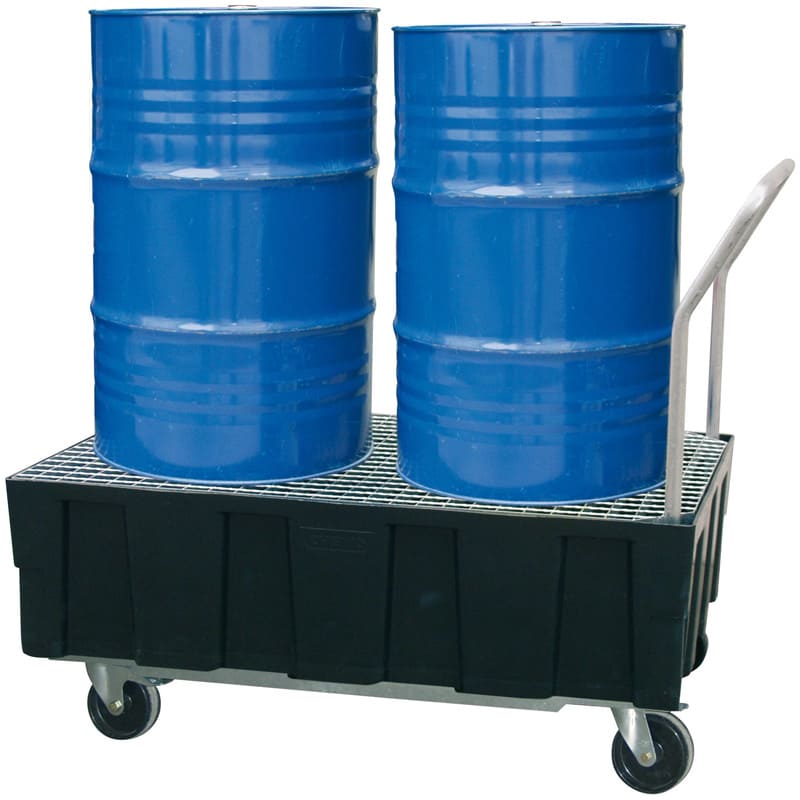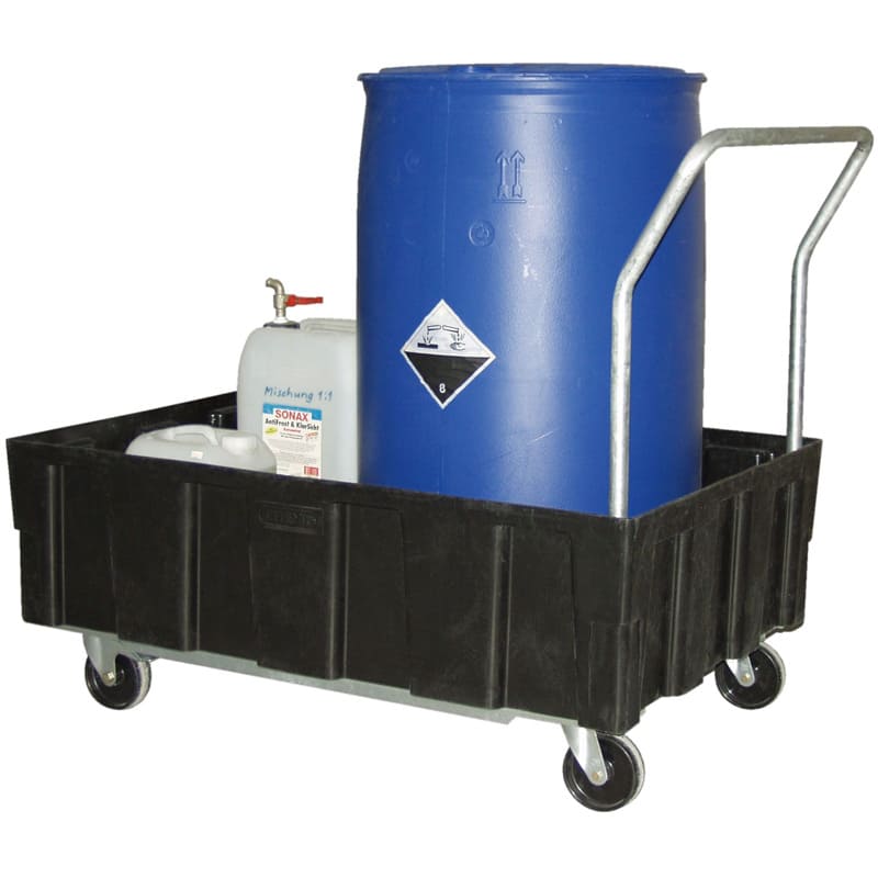 La conception du bac de rétention EURO-PE mobile autorise un excellent rapport qualité-prix, sans rien concéder à la qualité et à son caractère pratique. Conteneur évolutif en polyéthylène recyclé avec bonne résistance chimique à de nombreux acides et bases, ce bac de rétention mobile est doté de 2 roues pivotantes freinées, 2 roulettes fixes et d'un guidon fixe acier galvanisé.