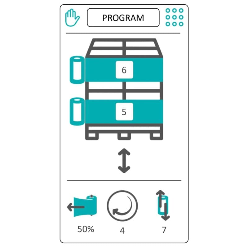 | Applications | Filmeuse pour palette jusqu'à 1200x1000 et 2000 kg |