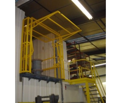 - un garde corps repliable, à l'arrière du dispositif, pour optimiser le dégagement de la zone de dépot et de transfert de charge après manutention.