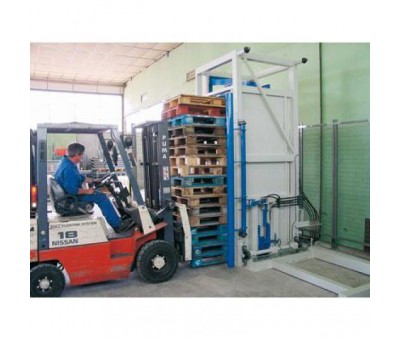Principe de fonctionnement des trieurs de palettes automatiques : les palettes sont chargées comme dans un magasin. Le basculement à 90° permet à l'opérateur d'accéder aux palettes défectueuses et de les sortir. La pile peut éventuellement être complétée après éviction des éléments non conformes.