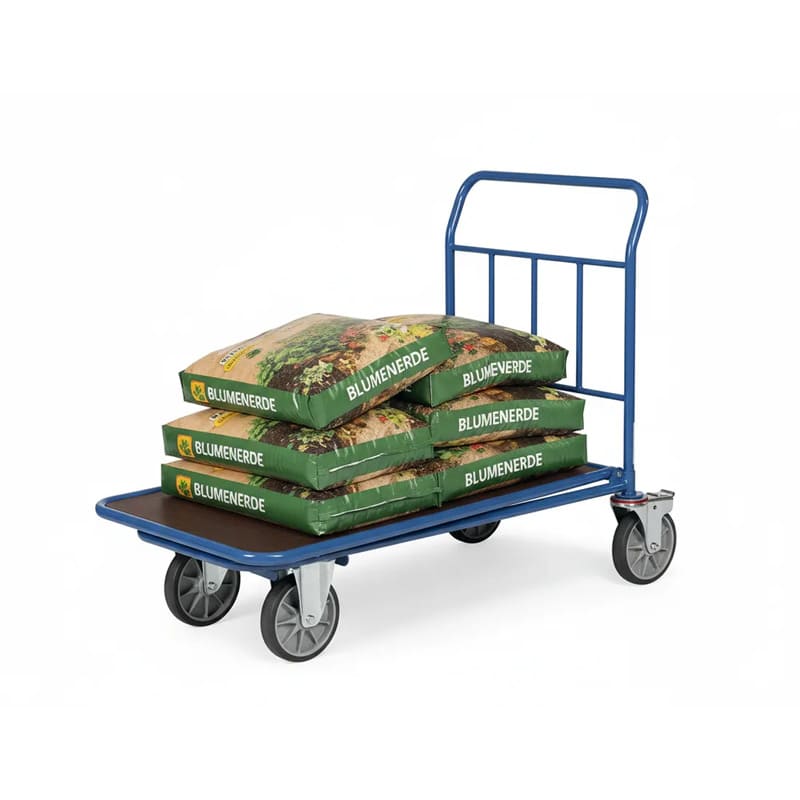 Ce chariot emboîtable avec dossier de poussée est un incontournable du Cash and Carry et de la distribution de produits pour la construction ou les espaces verts.